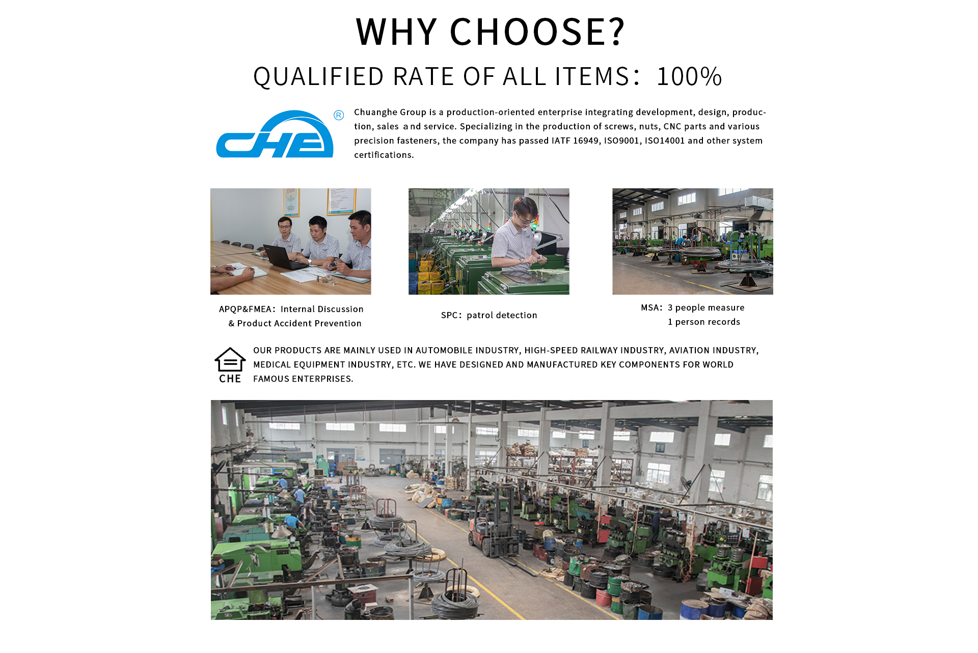 Chuanghe Fastener Co., Ltd(CHE parts)is a professional metal parts manufacturer and manufacturing enterprise, Specialize in manufacturing precision automotive fastener wholesale over 15 years. If you have a project then please get in touch and we can discuss your requirements and needs. View more cases we have accomplished to learn more details of our services